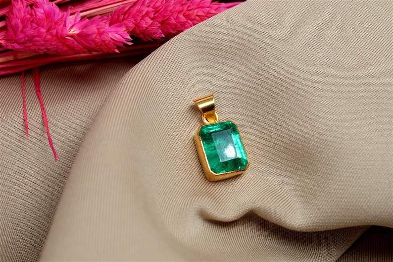 จี้ดอกไม้ประดับมรกตธรรมชาติและเซอร์คอน พร้อมสร้อยคอเซอร์คอน