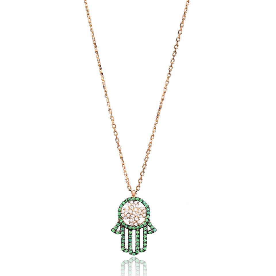มรกตหิน Hamsa สร้อยคอตุรกีขายส่งในแบบฉบับสร้อยคอ925เงินสเตอร์ลิงเครื่องประดับ
