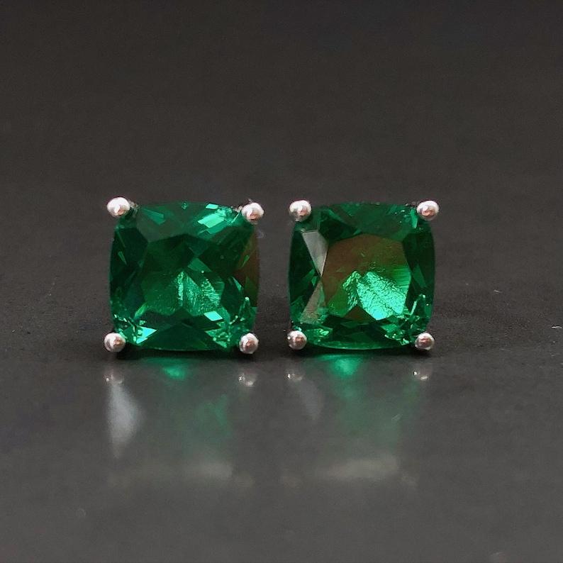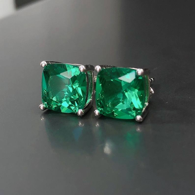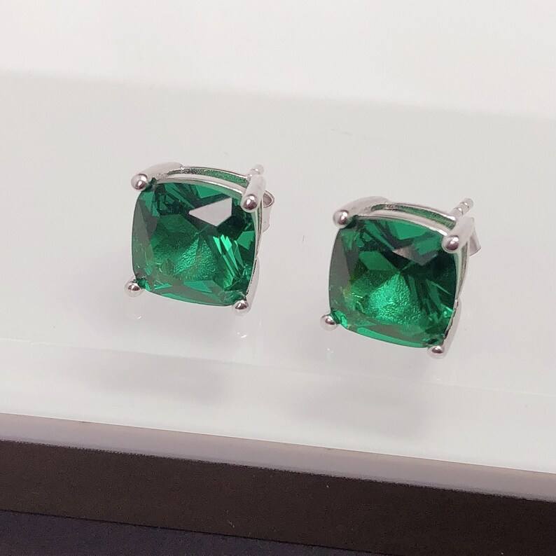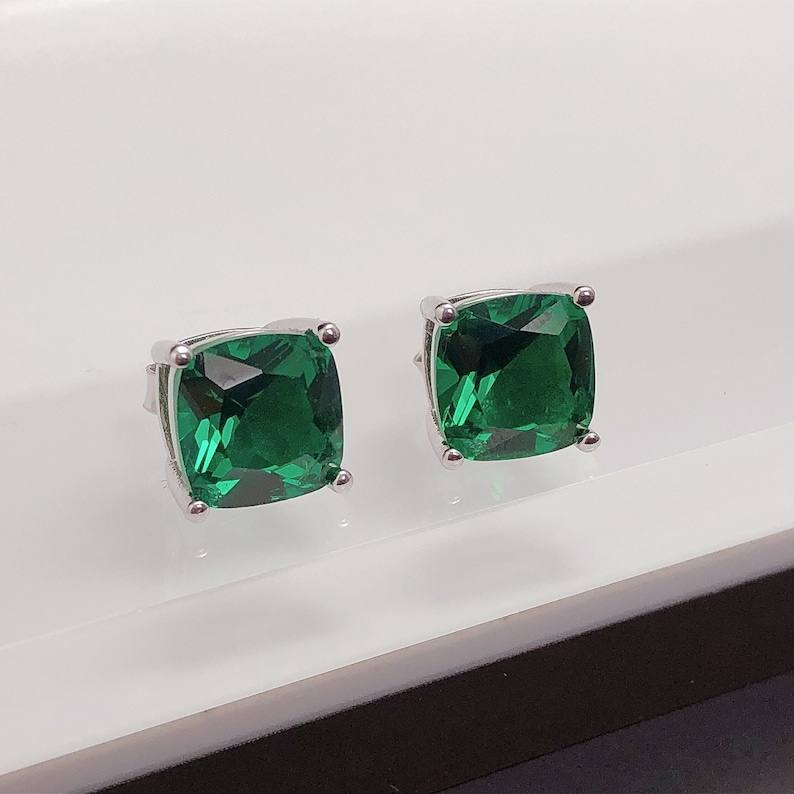 ต่างหูมรกตทรงสี่เหลี่ยมประดับเพชรพลอยประจำเดือนพฤษภาคม ของขวัญวันเกิดคริสต์มาสสำหรับผู้หญิง