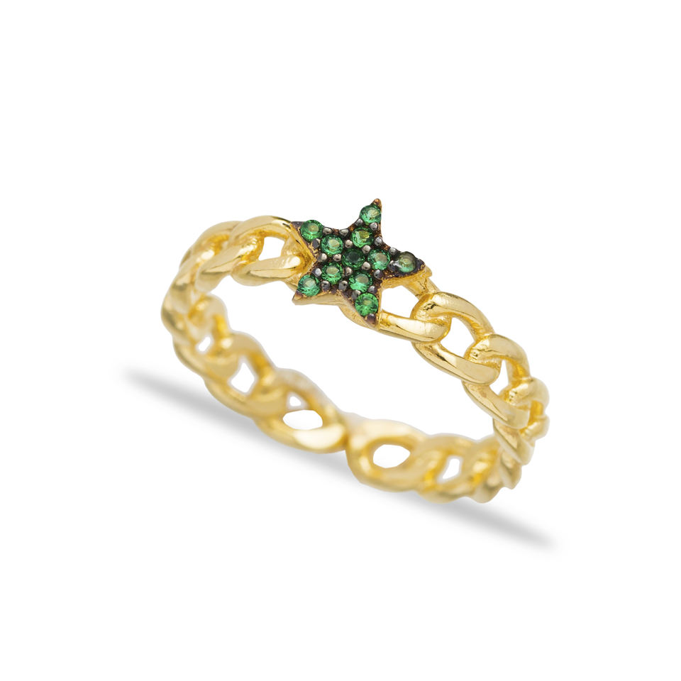 แหวนพลอยเพทายมรกตหินรูปดาวแบบปรับได้ดีไซน์แบบตุรกีเครื่องประดับเงินทำมือ925อัญมณีชั้นดี