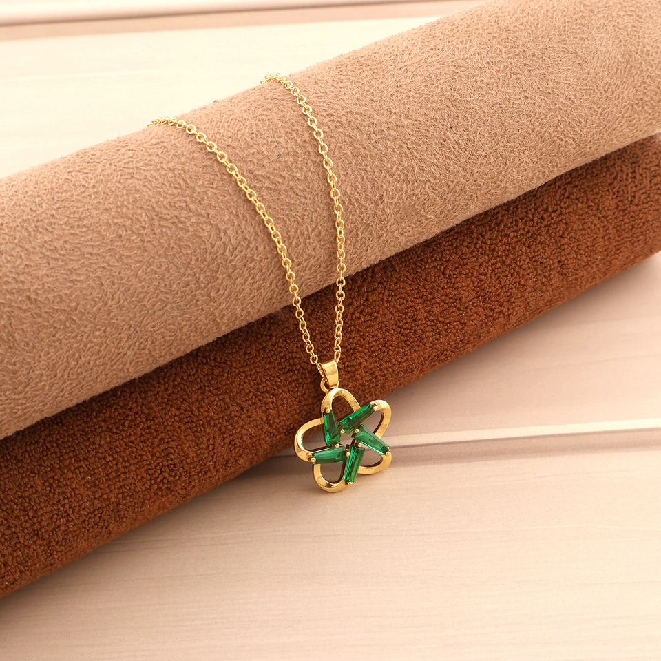 สร้อยคอจี้ควอตซ์มรกตดีไซน์ดอกไม้สร้อยคอจี้หยดน้ำสำหรับผู้หญิงเครื่องประดับแฟชั่น