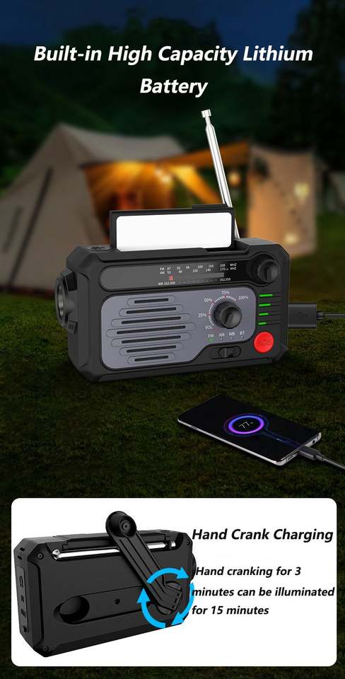 วิทยุมือถือพลังงานแสงอาทิตย์2000มิลลิแอมป์ชั่วโมงแบบพกพา AM/FM/วิทยุพร้อมไฟฉายและโคมไฟอ่านหนังสือ1วัตต์ผลิตภัณฑ์อัจฉริยะ
