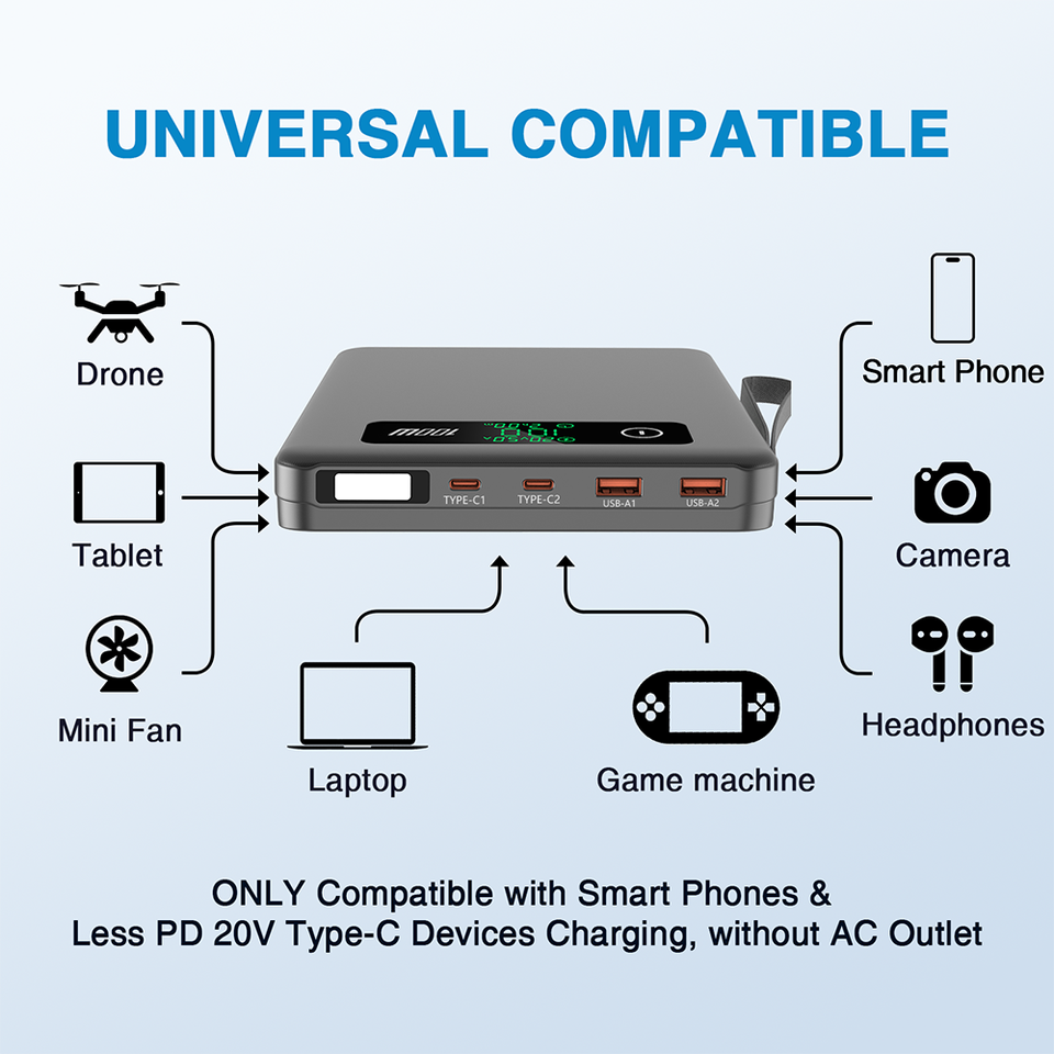 ไฟฉาย LED ฉุกเฉินใช้ในอาคารกลางแจ้งแหล่งจ่ายไฟ40000mAh 148WH 20V 5A USB QC 18W แล็ปท็อปชาร์จเร็ว