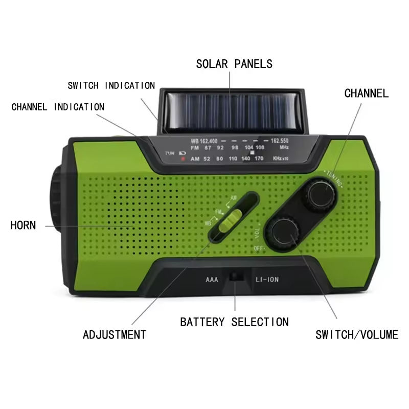 วิทยุพยากรณ์อากาศฉุกเฉินแบบมือหมุน พลังงานแสงอาทิตย์ ไฟฉายพกพา ดีไซน์ทันสมัยสำหรับกิจกรรมกลางแจ้ง รับประกัน 1 ปี สำหรับการตั้งแคมป์และการเดินป่า