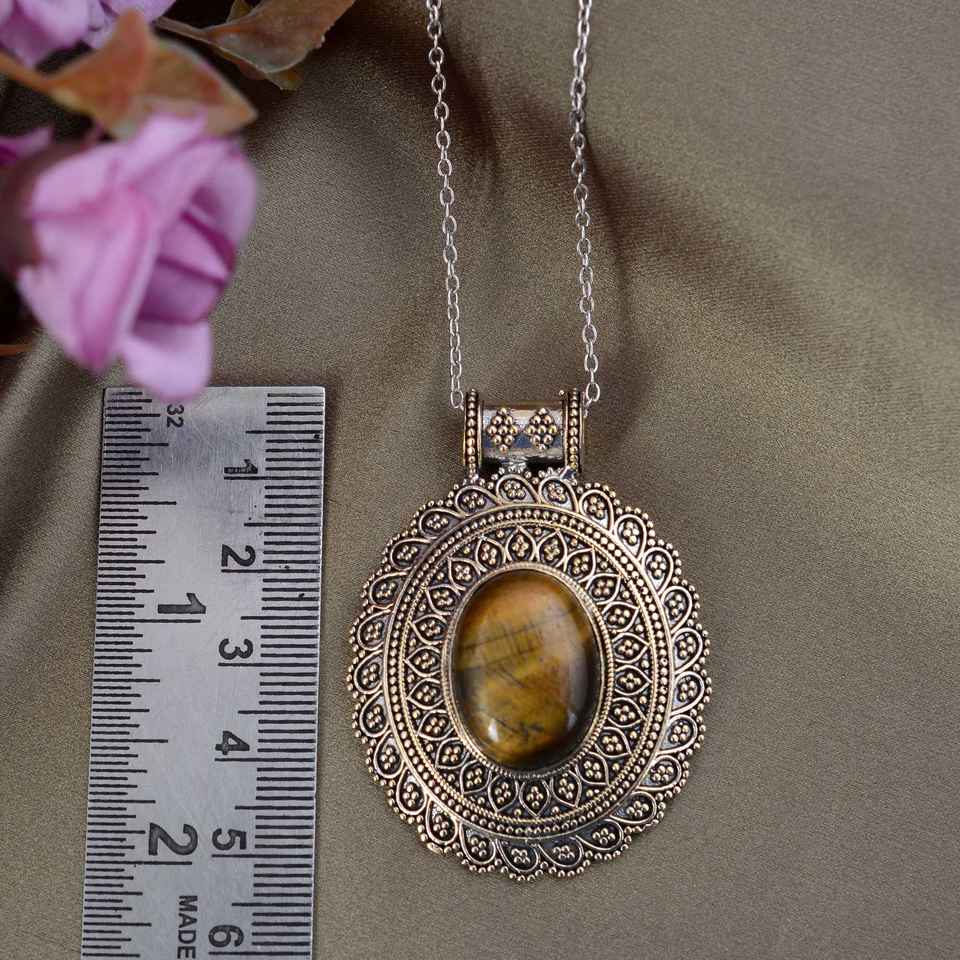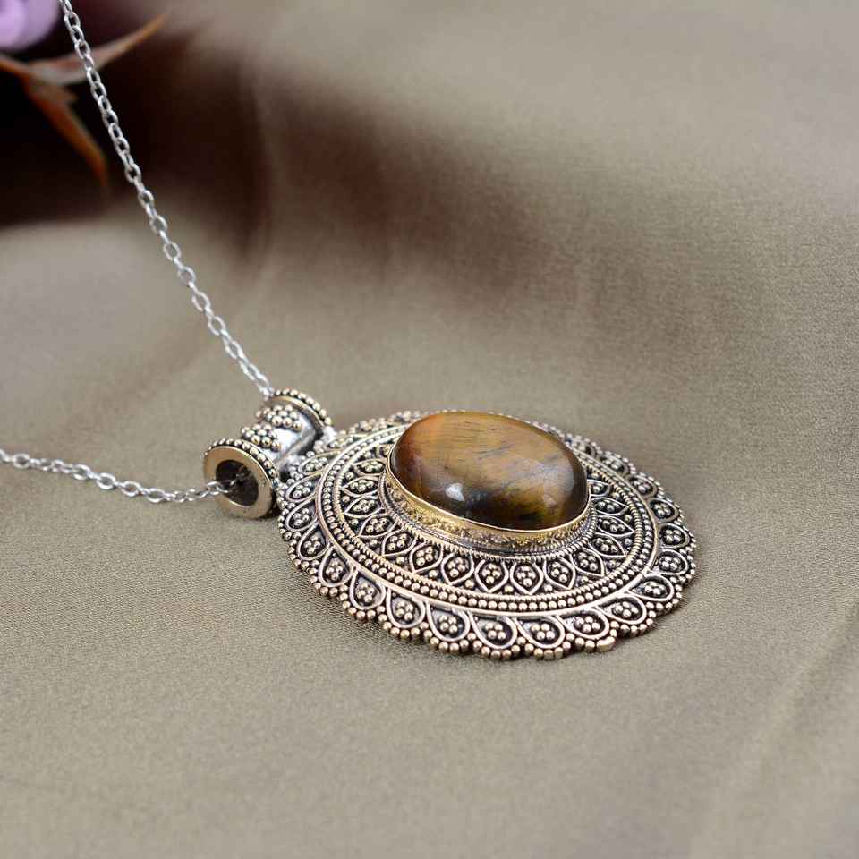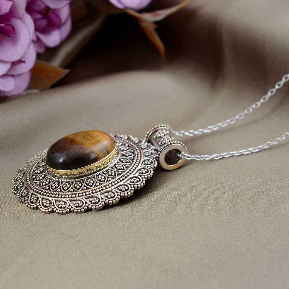 จี้พลอยตาเสือธรรมชาติรูปอารมณ์925เงินสเตอร์ลิงพร้อมเครื่องประดับแต่งงานผิวสีเงินออกซิไดซ์
