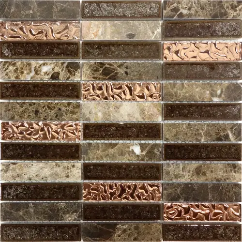 Emperador หินอ่อนผสมกับกระจกทองแดงโลหะกระเบื้องโมเสคผนังกระจก