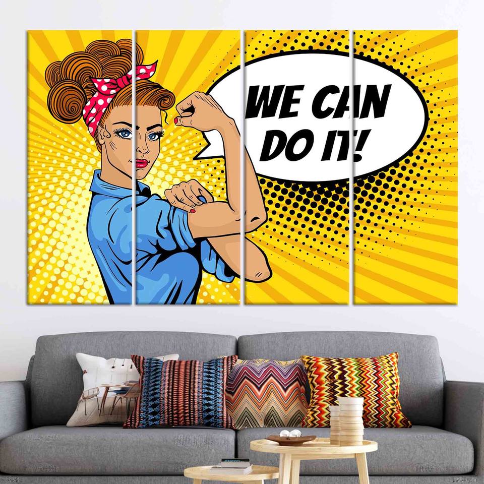 ภาพพิมพ์บนผ้าใบเสริมสร้างพลัง: ดีไซน์กระจกนิรภัยลายผู้หญิงทรงพลัง ชุดผ้าใบ 4 ชิ้น