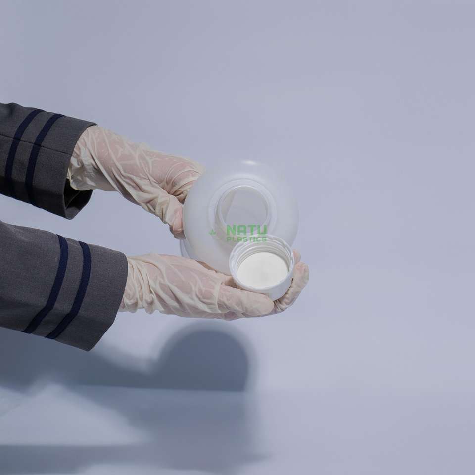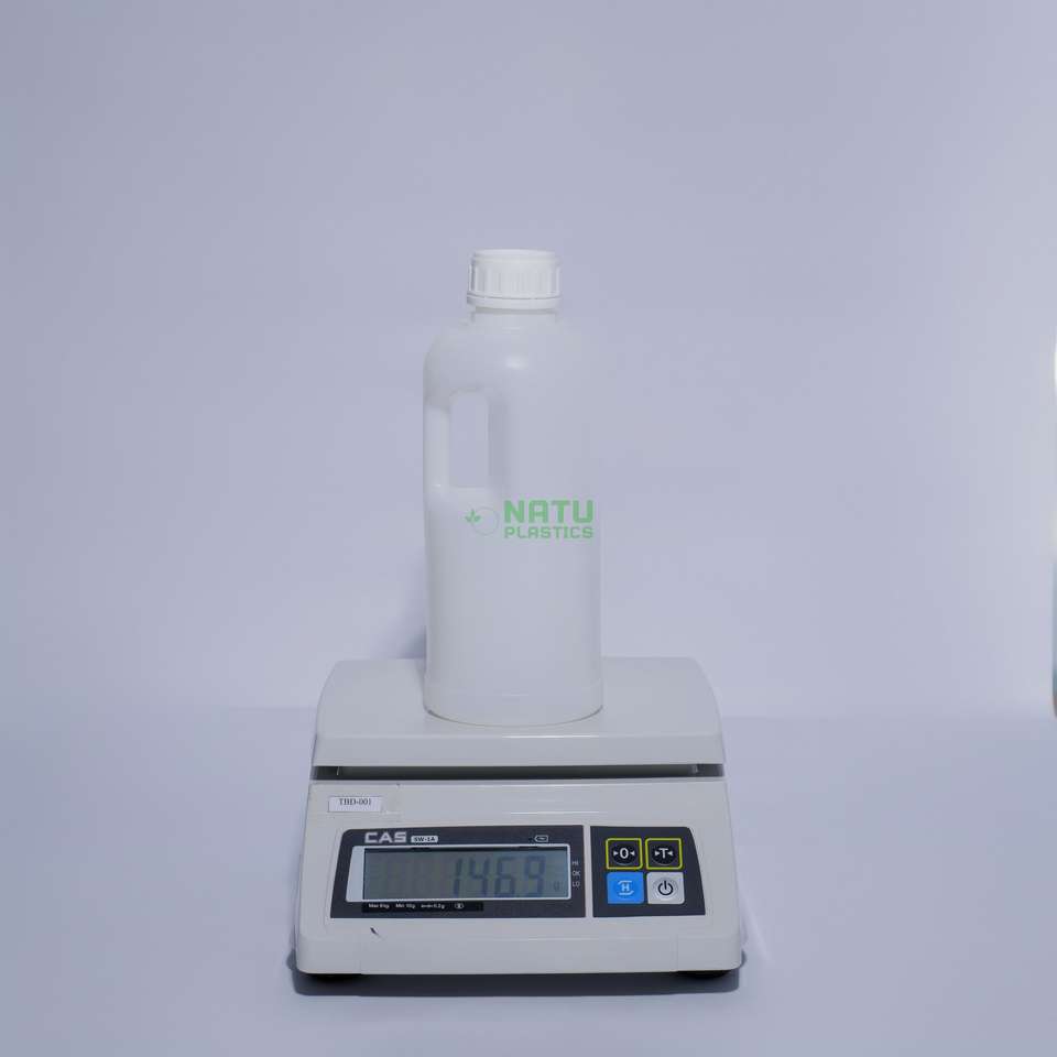 ขวดพลาสติก HDPE ทรงกลม ปากกว้าง ขนาด 1.5 ลิตร สำหรับบรรจุของเหลว สารเคมี น้ำ แบบหนา