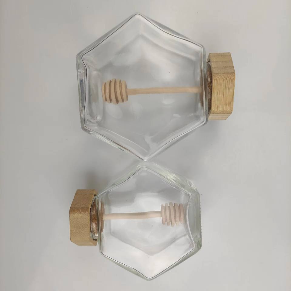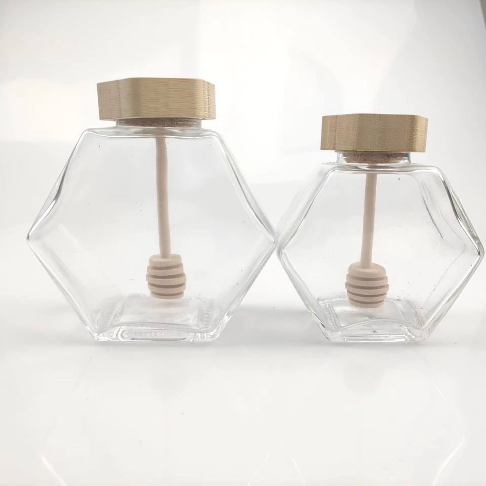 ขวดแก้วใสทรงหกเหลี่ยมขนาด 100 มล. 180 มล. 280 มล. 380 มล. สำหรับใส่ขนมหวาน น้ำผึ้ง อาหารดอง แยม พร้อมฝาโลหะ