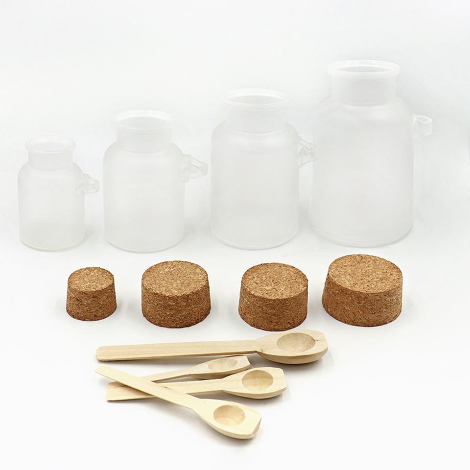 ขวดพลาสติก ABS ใส/ขุ่น ขนาด 100 มล. 200 มล. 300 มล. 500 มล. พร้อมจุกไม้ก๊อก สำหรับบรรจุภัณฑ์ผลิตภัณฑ์ดูแลส่วนบุคคล