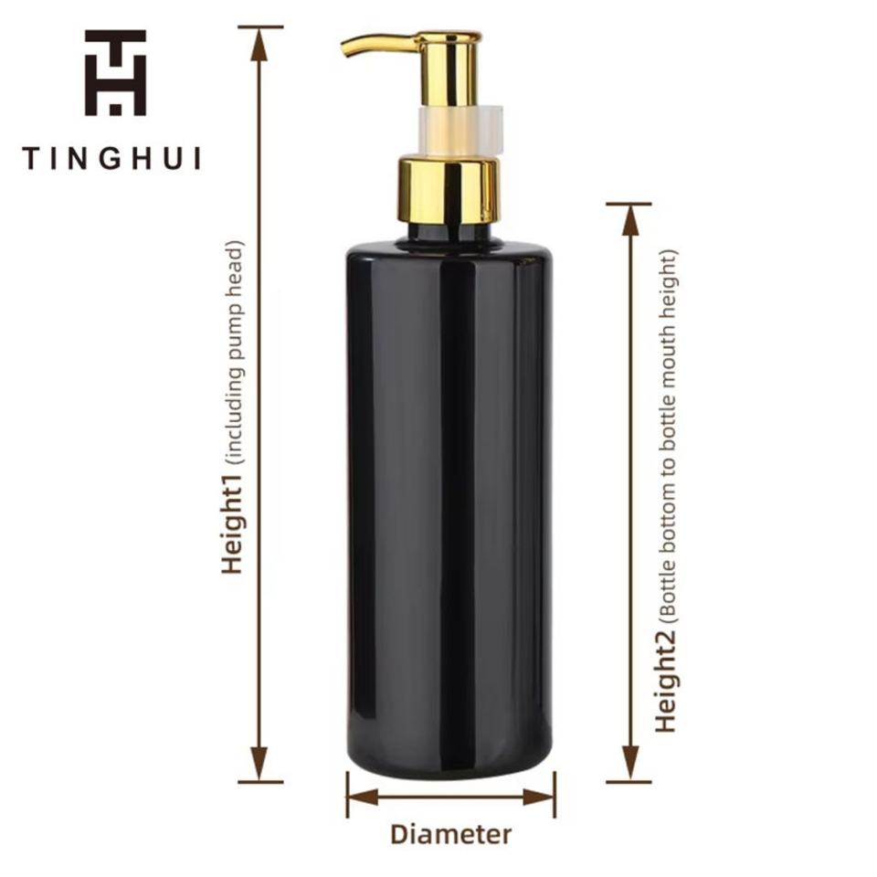 ขวดพลาสติก PET ขนาด 100 มล. 250 มล. 300 มล. 500 มล. พร้อมหัวปั๊มน้ำมันสีทอง ขวดเปล่าสีเหลืองอำพัน สีขาว สีใส สำหรับแชมพูและน้ำมันทำความสะอาด