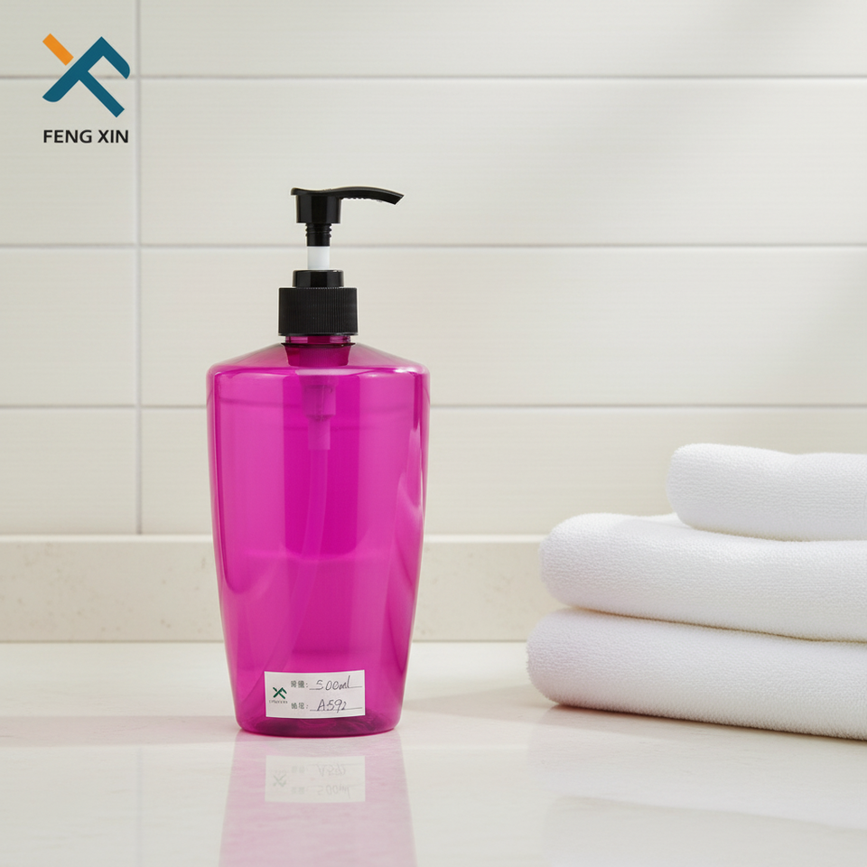ขวดแชมพูเปล่าขนาด 500 มล. หรูหรา ขวดปั๊มโลชั่นพลาสติก PET ใส พิมพ์สกรีน
