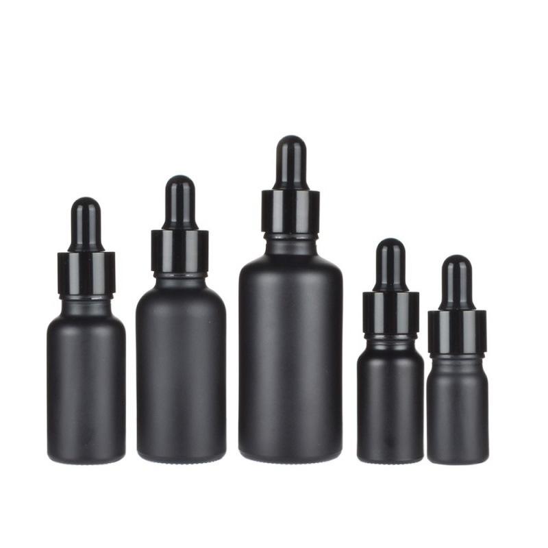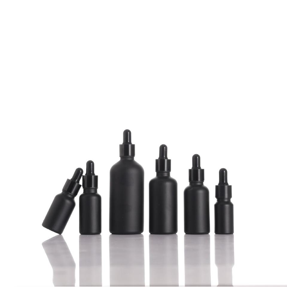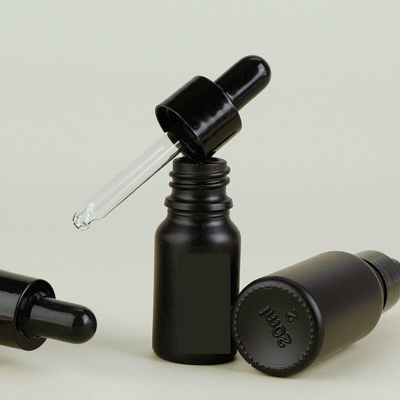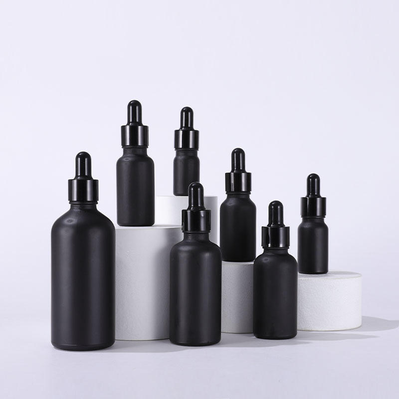 ขวดแก้วหยดสีดำด้านขนาด 5 มล.-100 มล. สำหรับบรรจุภัณฑ์เซรั่มบำรุงผิวและเครื่องสำอาง