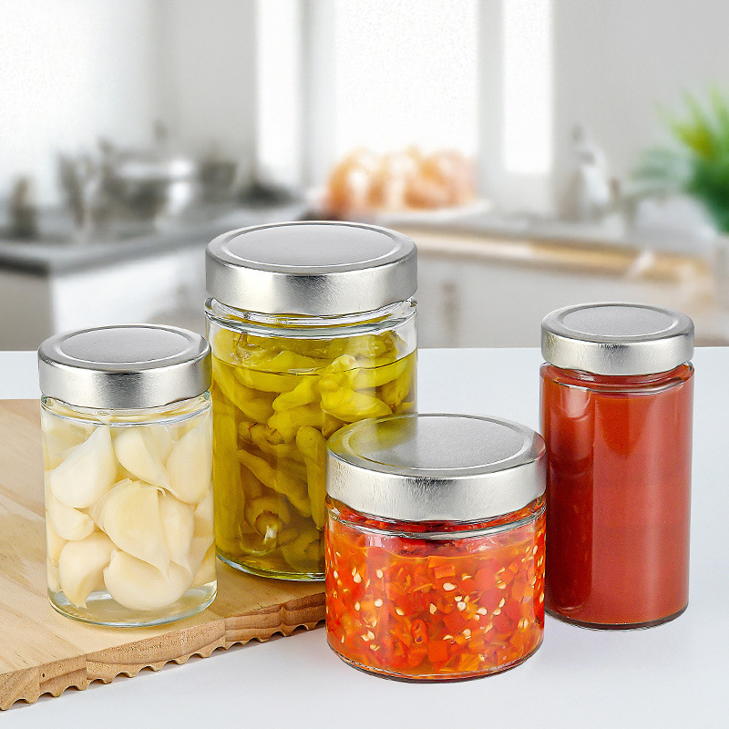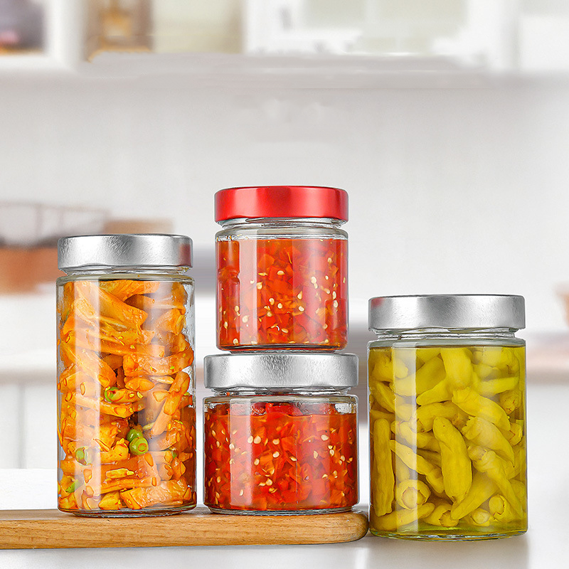 ขวดแก้วกลมพร้อมฝาปิดโลหะลึกขนาด8ออนซ์16ออนซ์20ออนซ์ขวดปิดผนึกแยมสำหรับดองวุ้นนมเนยน้ำผึ้ง