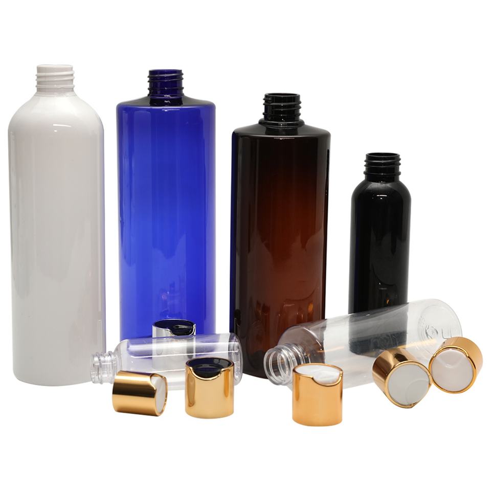 ขวดแชมพูเปล่าสีเหลืองอำพัน ดำ ขาว ขนาด 100 มล. 120 มล. 250 มล. 500 มล. ขวดพลาสติก PET สำหรับโทนเนอร์ โลชั่น พร้อมฝาจุกสีทอง