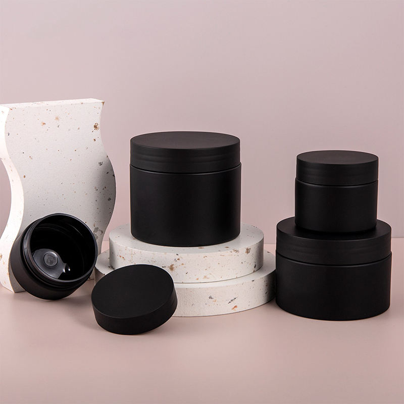 ขวดพลาสติก PET สีดำขุ่นทรงกลมสำหรับใส่มาส์กหน้า ครีมบำรุงรอบดวงตา ครีมบำรุงผิวหน้า ฝาเกลียว สำหรับบรรจุเซรั่มบำรุงผิว