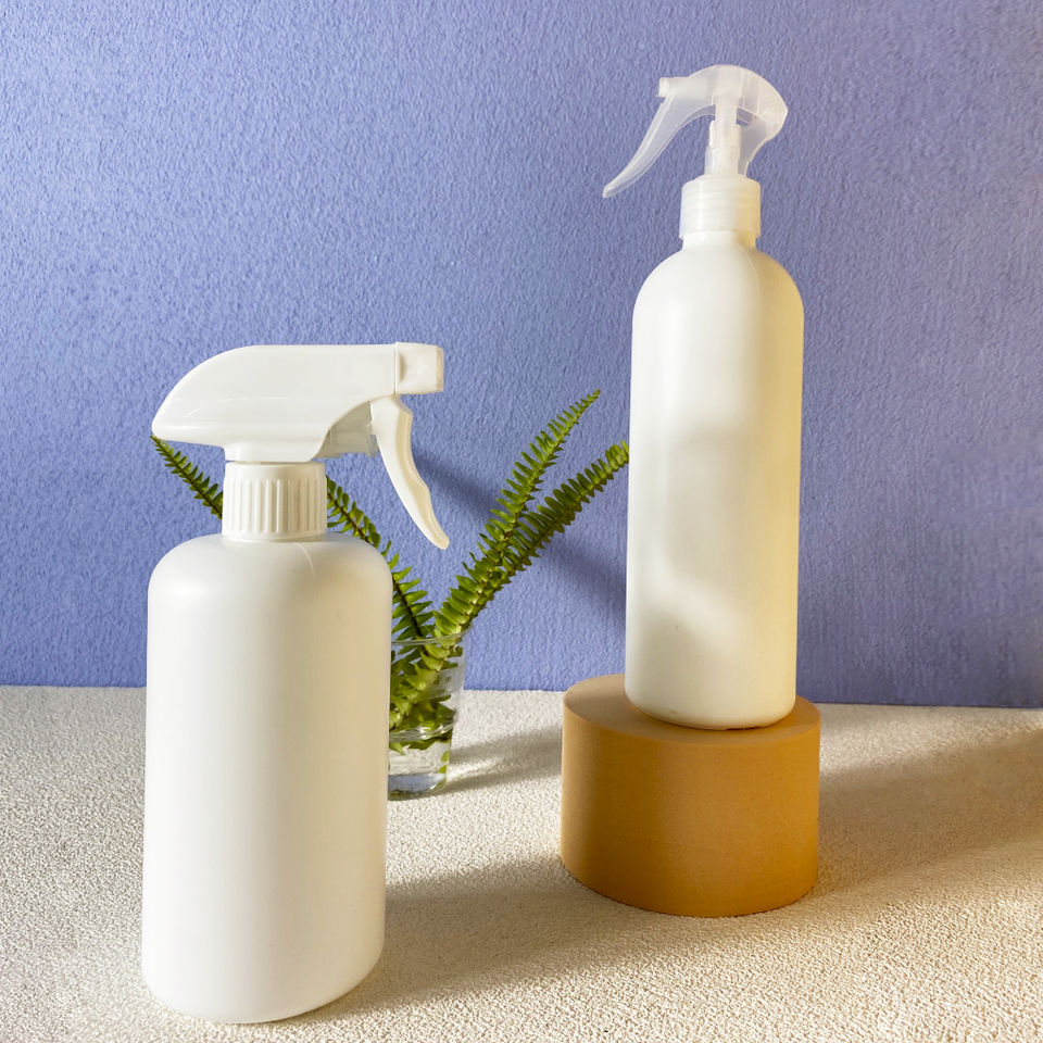 ขวดสเปรย์เปล่า HDPE ขนาด 16 ออนซ์ 500 มล. สำหรับน้ำยาทำความสะอาด พร้อมพิมพ์สกรีนและหัวปั๊มสเปรย์