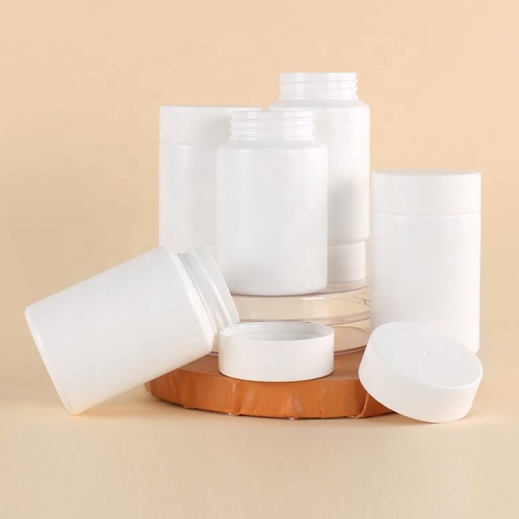 ขวดพลาสติก HDPE สำหรับบรรจุผงโปรตีน สีขาว ขนาด 150 มล. 200 มล. 300 มล. 500 มล. 1000 มล. ปากกว้าง พร้อมฝาเกลียว