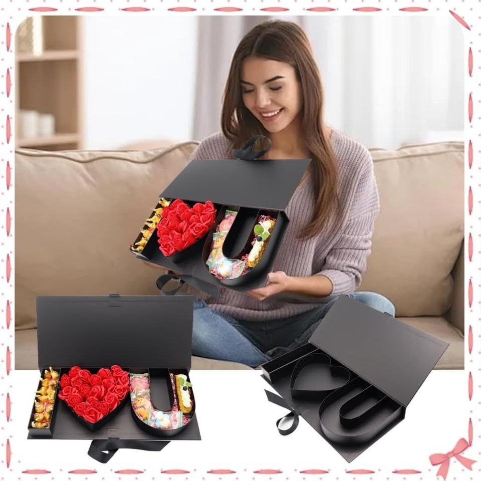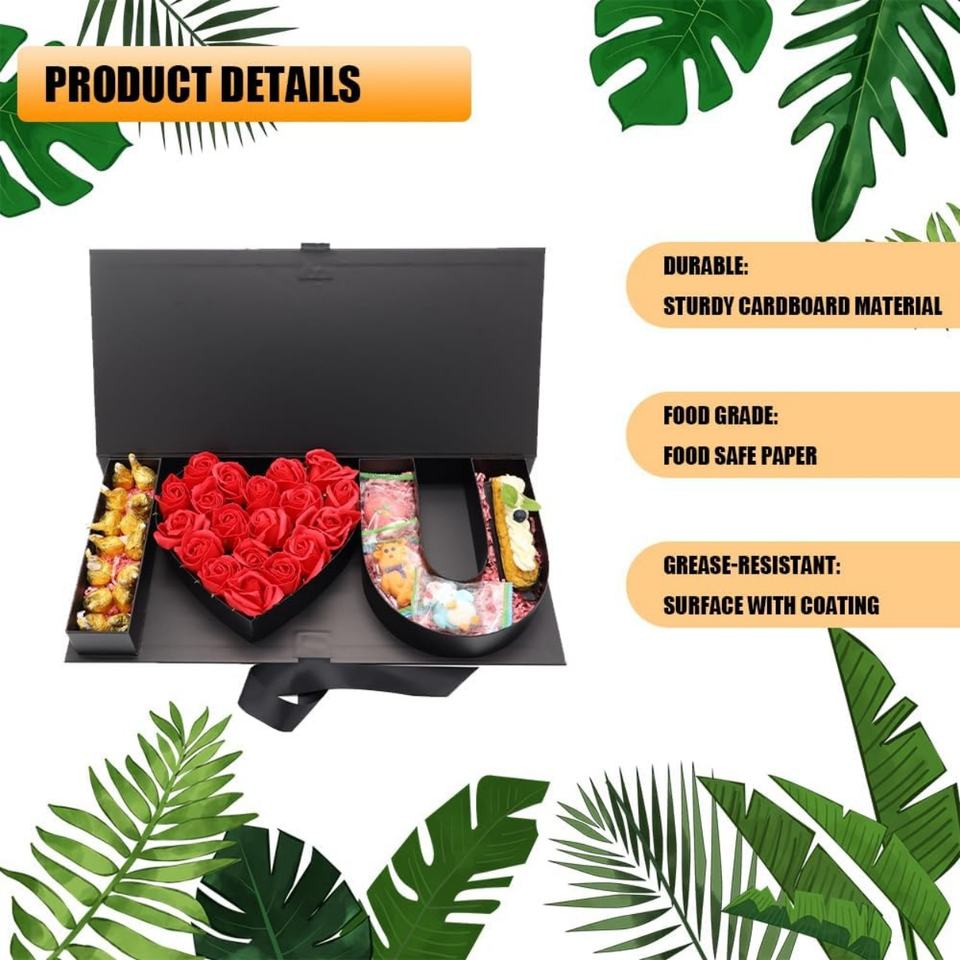 กล่องของขวัญรูปหัวใจเปล่า "ฉันรักคุณ" ทำจากกระดาษแข็ง สำหรับใส่ดอกไม้หรือช็อกโกแลต ฝาใส (ฉันรักคุณ สีดำ) ของขวัญงานฝีมือจากจีน