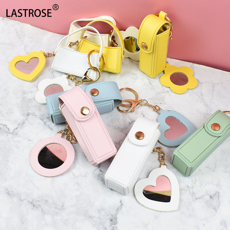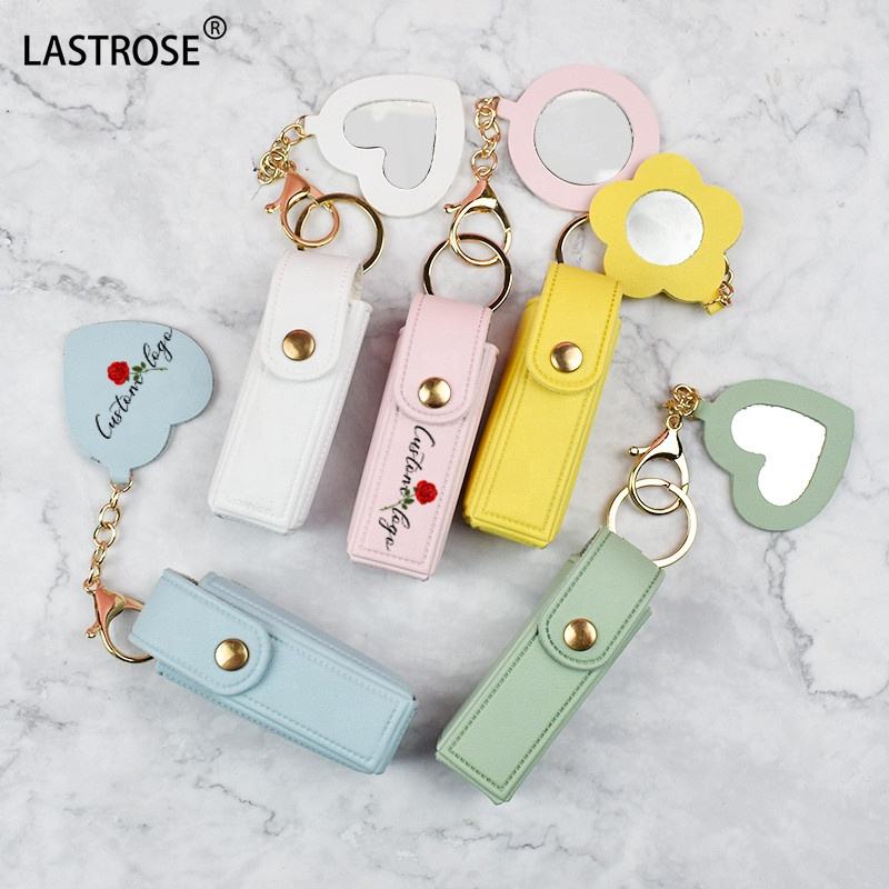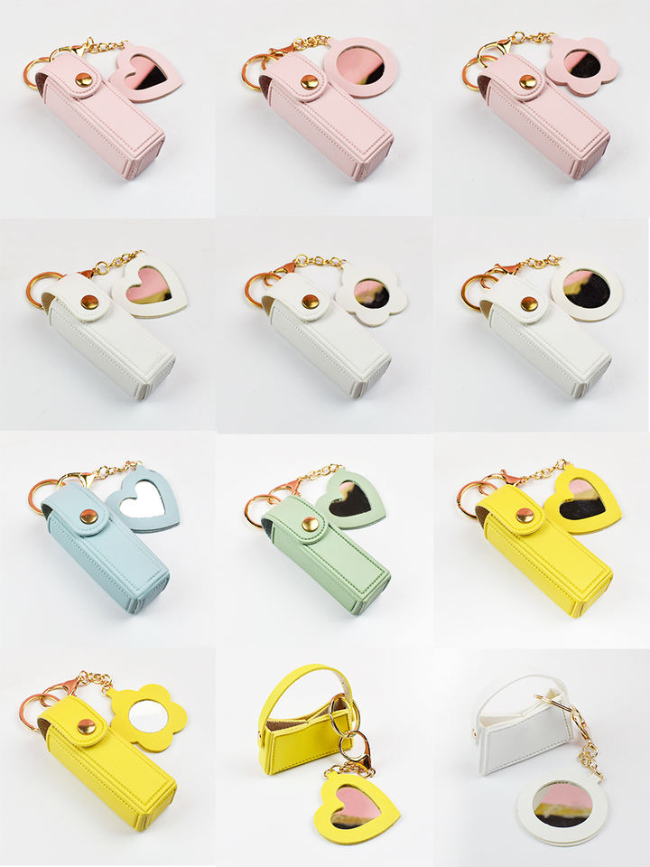 กระเป๋าห่วงโซ่กุญแจกระจกรูปดอกไม้ที่เก็บลิปสติกลิปกลอสแบบว่าง