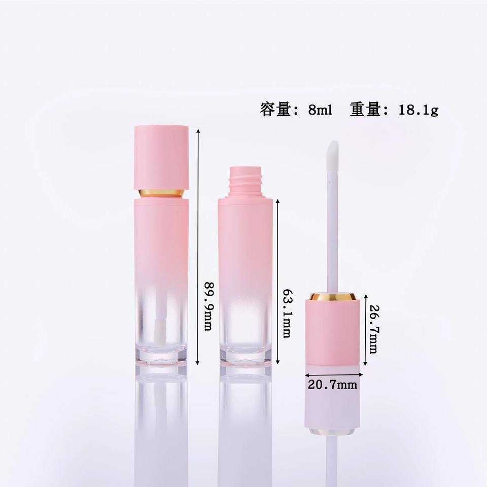หลอดลิปกลอสเปล่า 8 มล. สีขาวด้านไล่เฉดสีชมพูดำ บรรจุภัณฑ์เครื่องสำอางพร้อมฝาปิดสำหรับใช้แต่งหน้า