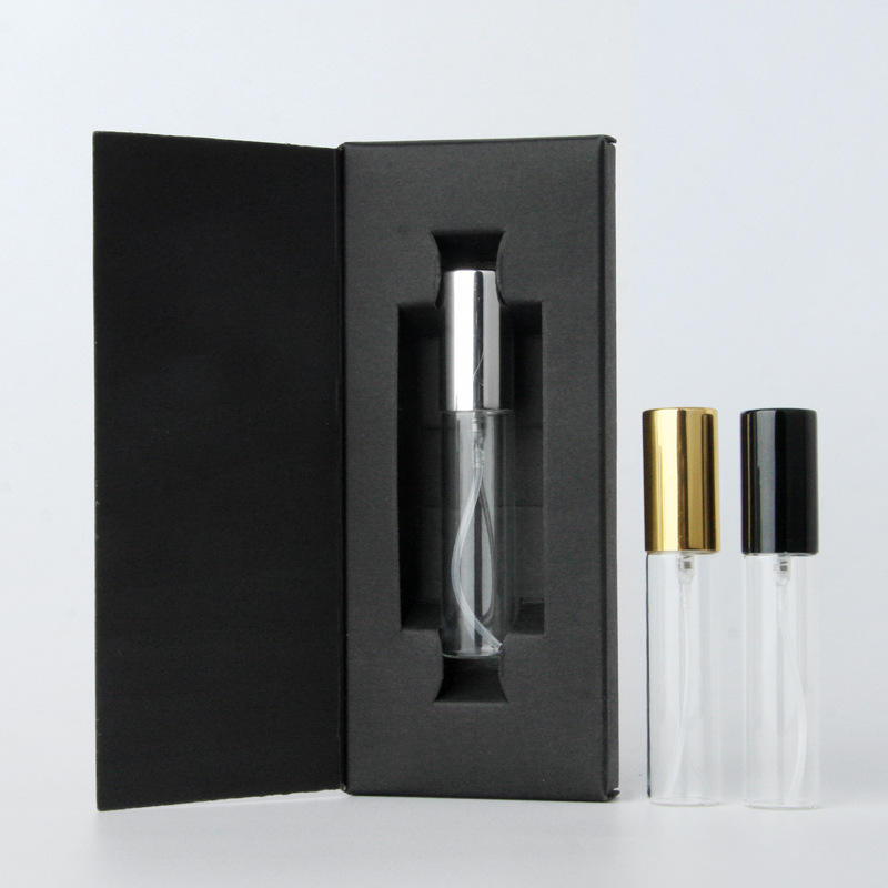 ขวดสเปรย์เปล่าขวดเครื่องสำอางขวดน้ำหอมแบบเติมได้10มล. ขวดน้ำหอมแก้วใส5มล. พร้อมกล่อง