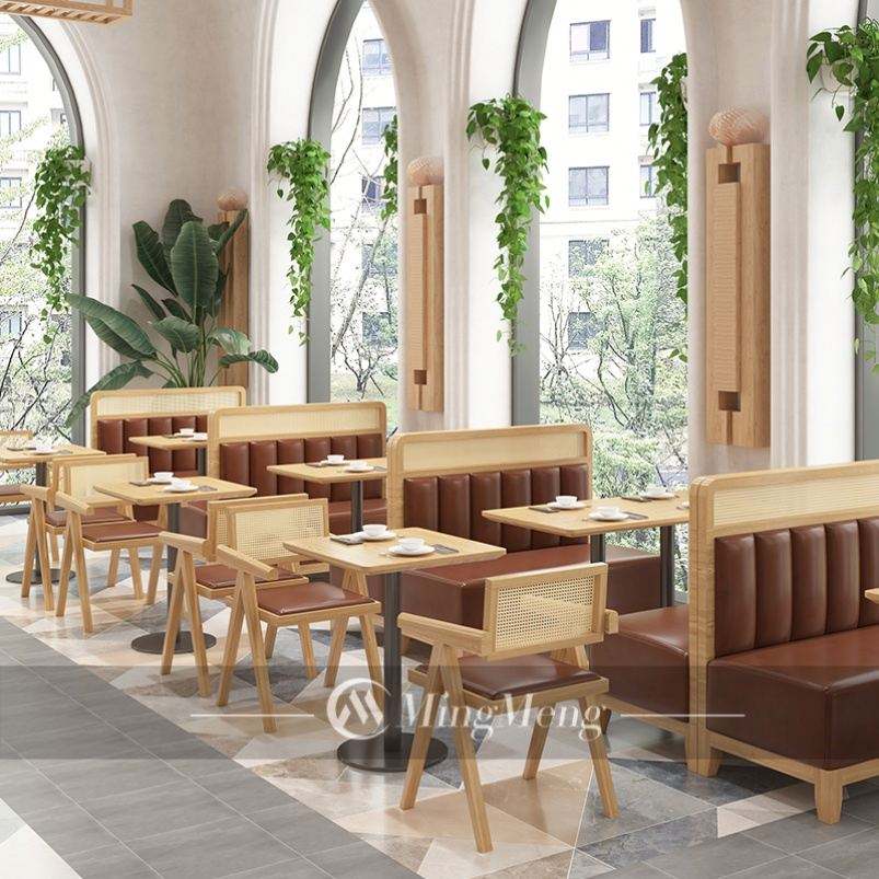 เฟอร์นิเจอร์โรตินโฟซานพร้อมเบาะนั่งพิงหลังลายอ้อยชุดเฟอร์นิเจอร์ร้านอาหารเทรนด์ใหม่เฟอร์นิเจอร์หวายโต๊ะร้านอาหาร