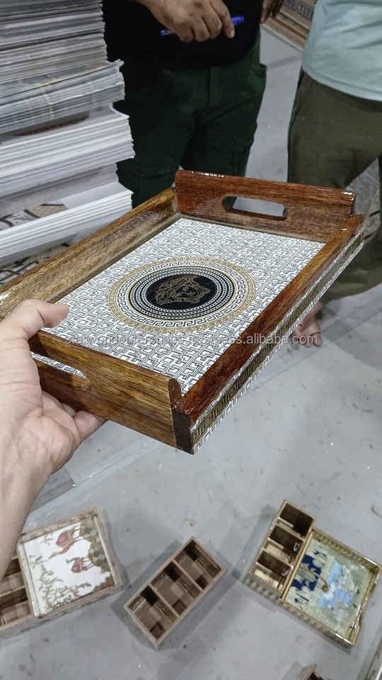 Enamel MDF Wooden tissue paper box Wood Handles for Serving Fruit Coffee Tea Breakfast Foods at Weddings & Parties