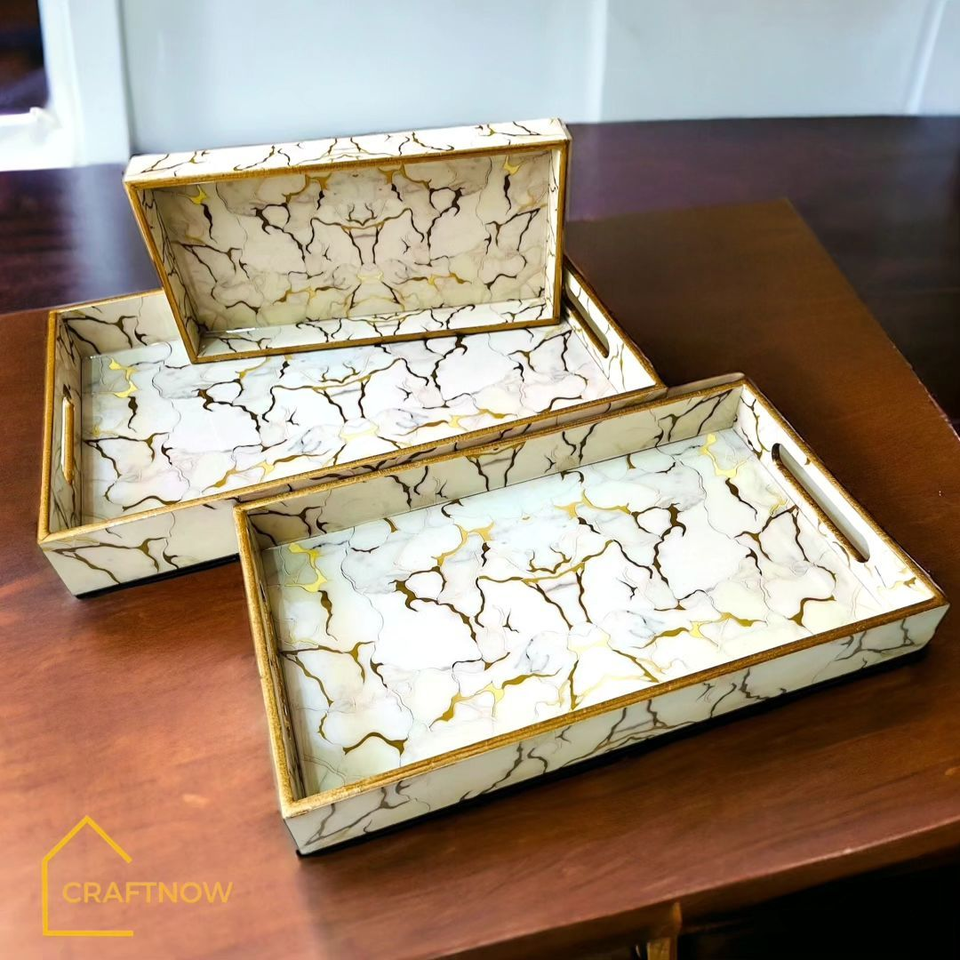 ถาดเคลือบลายพิมพ์แบบคลาสสิก งานฝีมืออินเดียอเนกประสงค์ งานฝีมือธรรมชาติ ภาชนะใส่อาหาร เครื่องดื่ม ของตกแต่งโต๊ะอาหาร