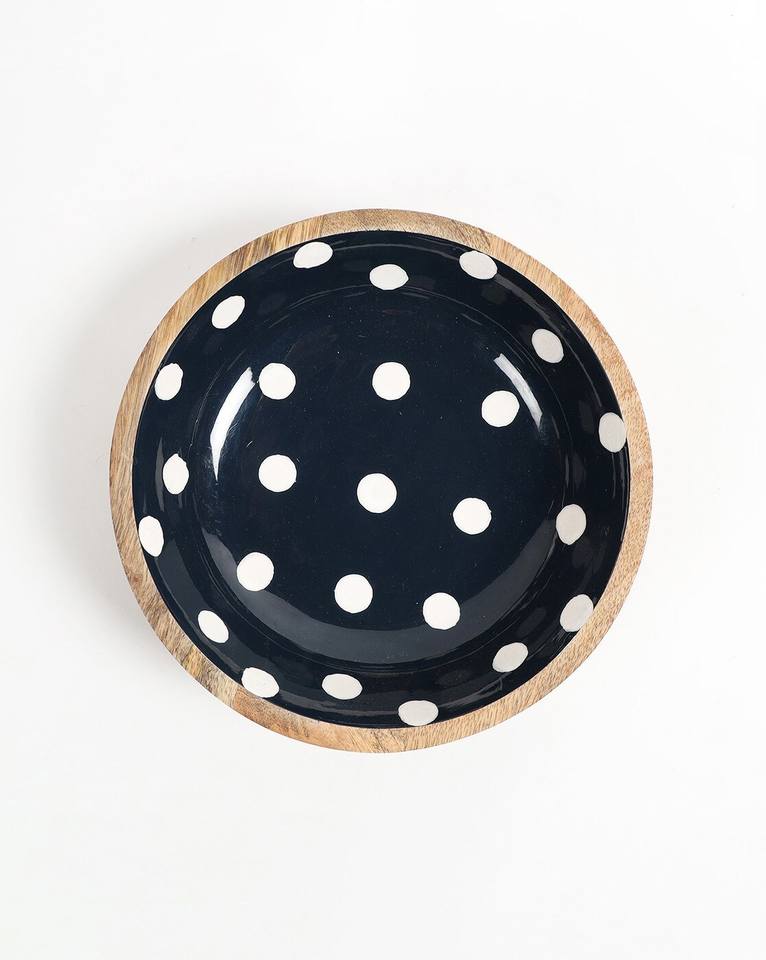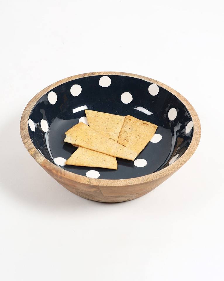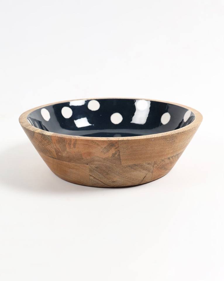 Wooden & Enamel Printed Serving Bowl