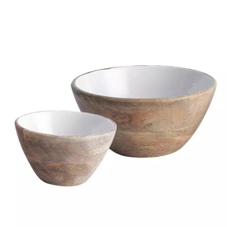ชามไม้พร้อมถาดสำหรับใส่อาหารชามเสิร์ฟผลไม้แห้งทำจากไม้พิมพ์เคลือบดีไซน์ปลอดภัย