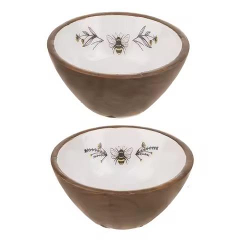 ชุดชามเคลือบลายพิมพ์ ชามใส่ผลไม้อบแห้ง ชามสลัดทรงกลม ชุดชามเสิร์ฟบนโต๊ะอาหาร ชามเสิร์ฟบนโต๊ะอาหารทำจากไม้