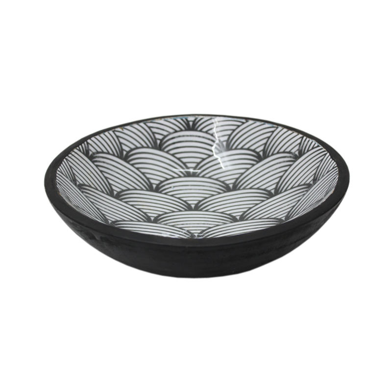 ชามไม้ทรงกลมเคลือบสีดำขนาดฐานอุปกรณ์เสิร์ฟสลัดอาหารทำด้วยมือเครื่องครัวดีไซน์แบบเคลือบ
