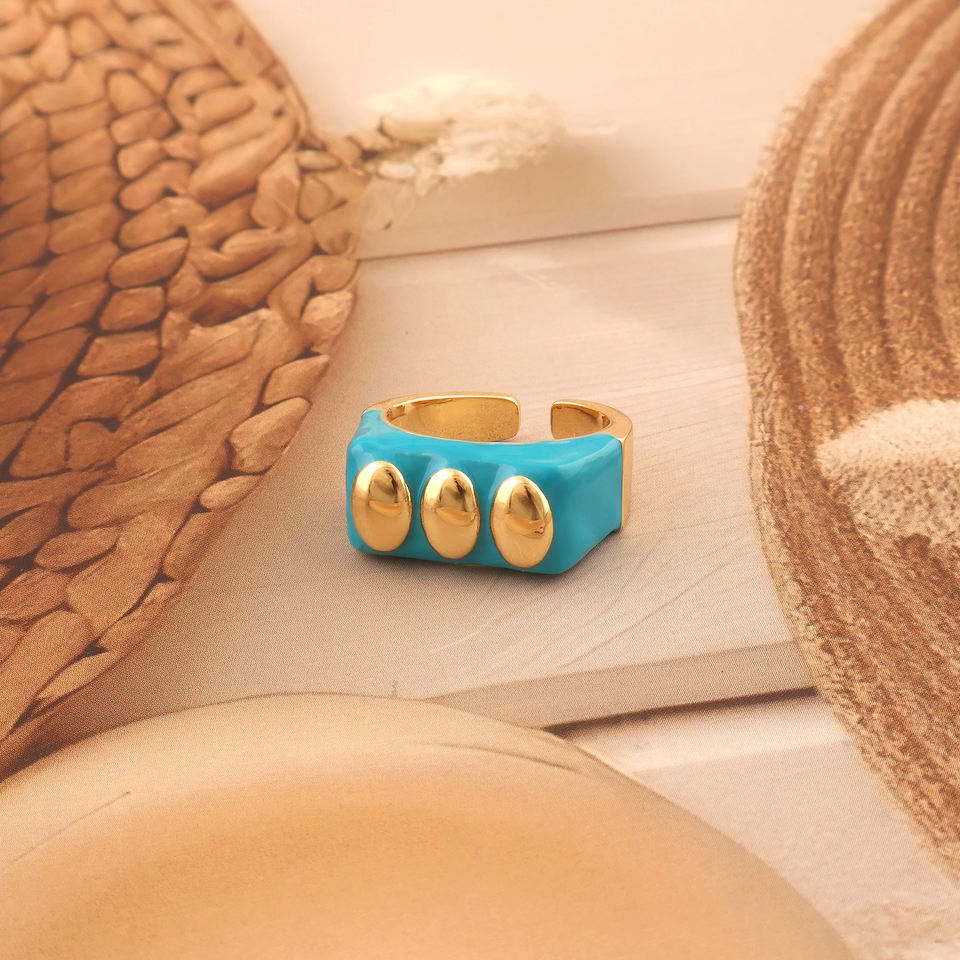 แหวนสายเคลือบแบบปรับได้สีสันสดใสสีน้ำเงินเคลือบดีไซน์โดดเด่นแหวนแฟชั่นสดใส