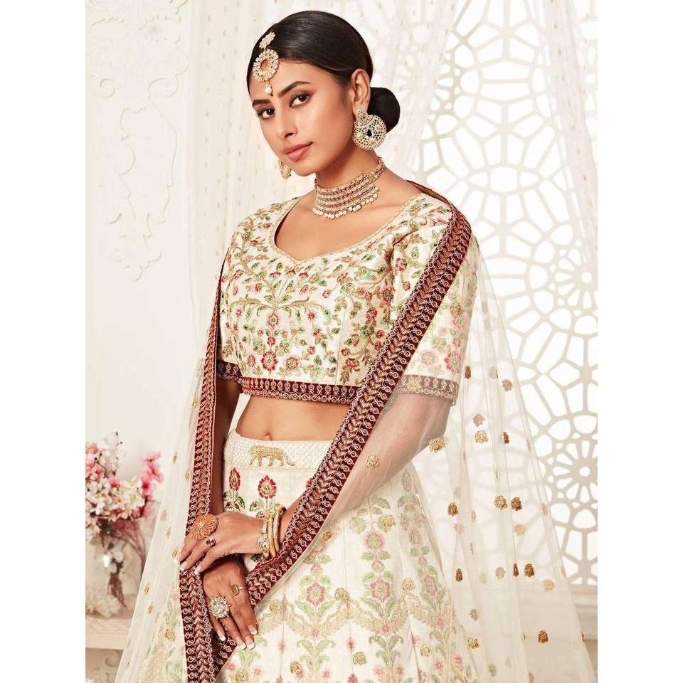 ชุดแต่งงานผ้าไหมปักสีขาวชวนหลงใหล