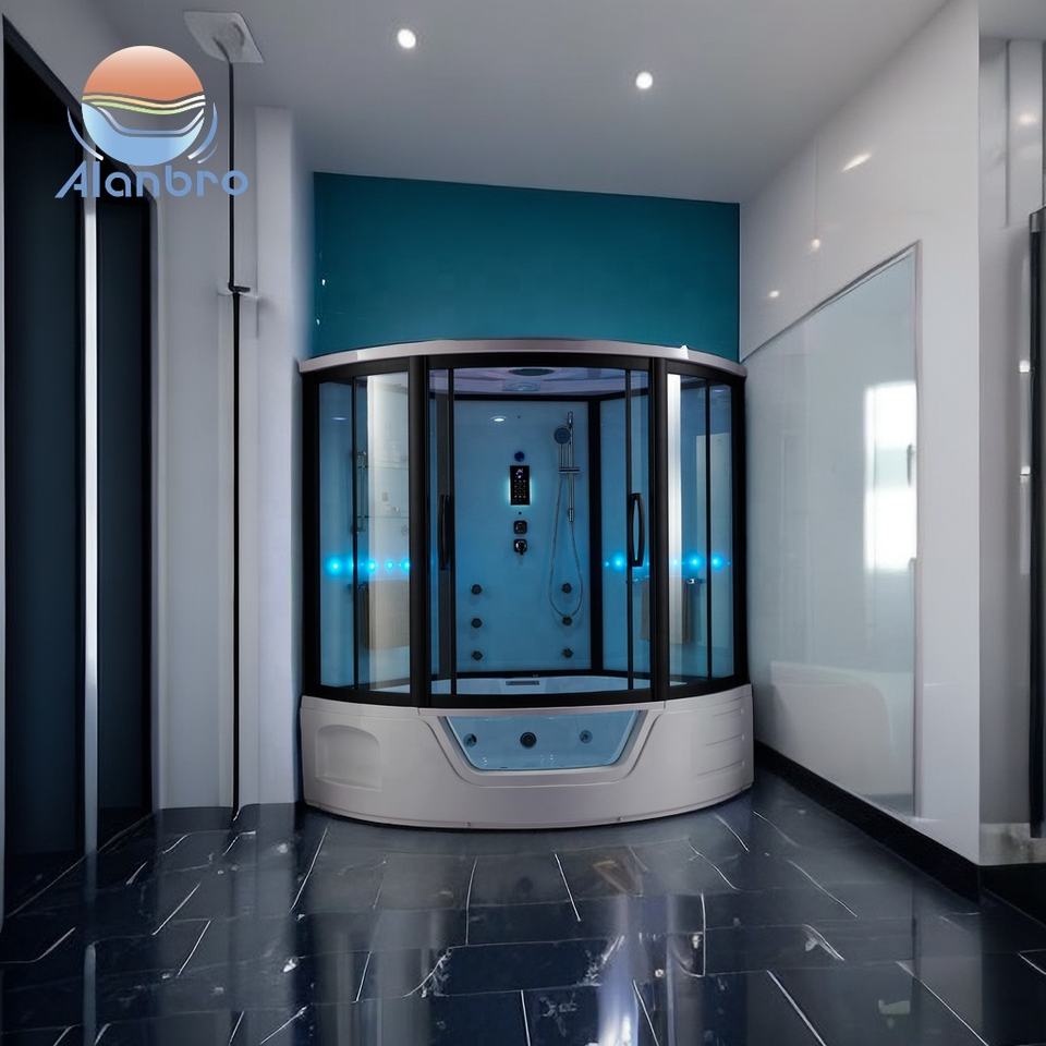 ห้องซาวน่าอบไอน้ำอะคริลิกทันสมัยในร่มพร้อมอ่างน้ำร้อนระบบนวดด้วยพลังน้ำ