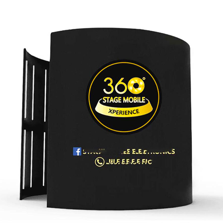 ตู้โชว์ภาพถ่ายสีเงิน RGB ไฟ LED 360องศา