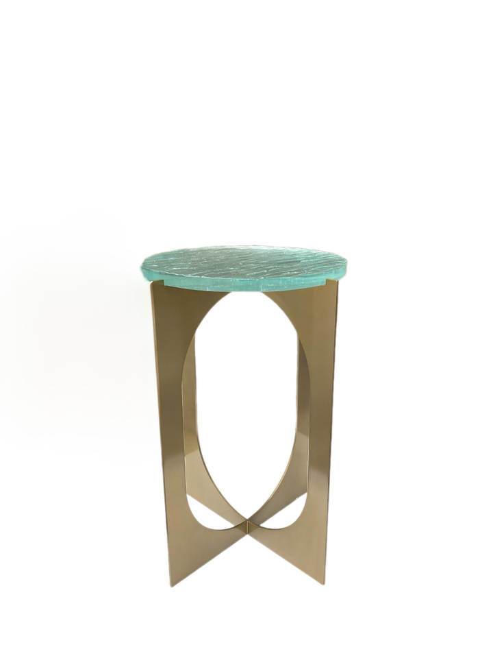 คำอธิบาย:โต๊ะกระจกหล่อทองทันสมัยเคลือบโลหะทรงกลมสไตล์ร่วมสมัย