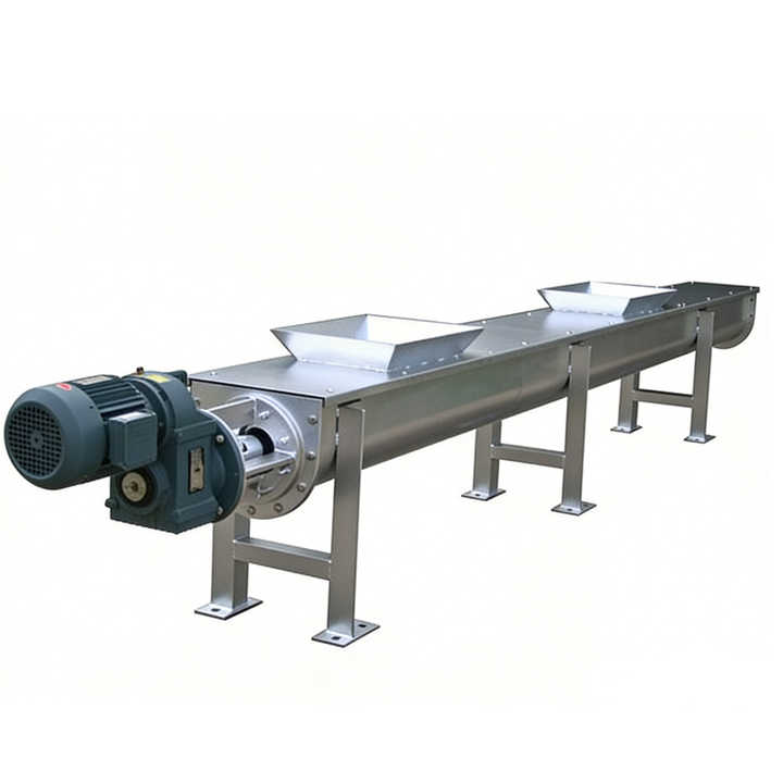 เครื่องลำเลียงแบบสกรูเหล็กกล้าคาร์บอนชนิด U แนวนอน ประหยัดพลังงาน ทนทาน สำหรับระบบขนส่งวัสดุแบบผง เม็ด และแบบก้อน
