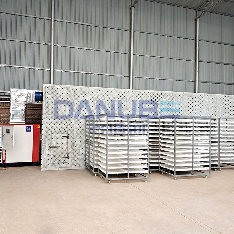 ห้องอบแห้งผักและถั่วประหยัดพลังงานแบบอัตโนมัติ พร้อมอุปกรณ์ลดความชื้นแบบเกียร์และ PLC ชนิดถาด
