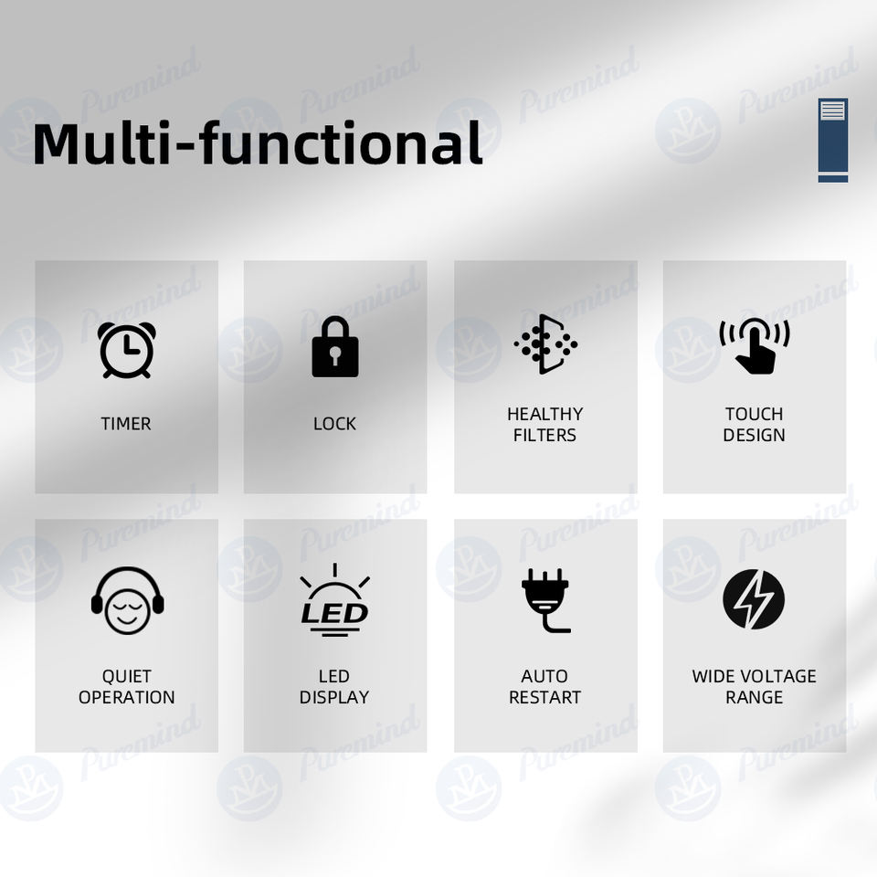 อากาศบริสุทธิ์, เครื่องลดความชื้น, ประหยัดพลังงาน, โหมดเงียบ, ทำความสะอาดด้วยตนเอง