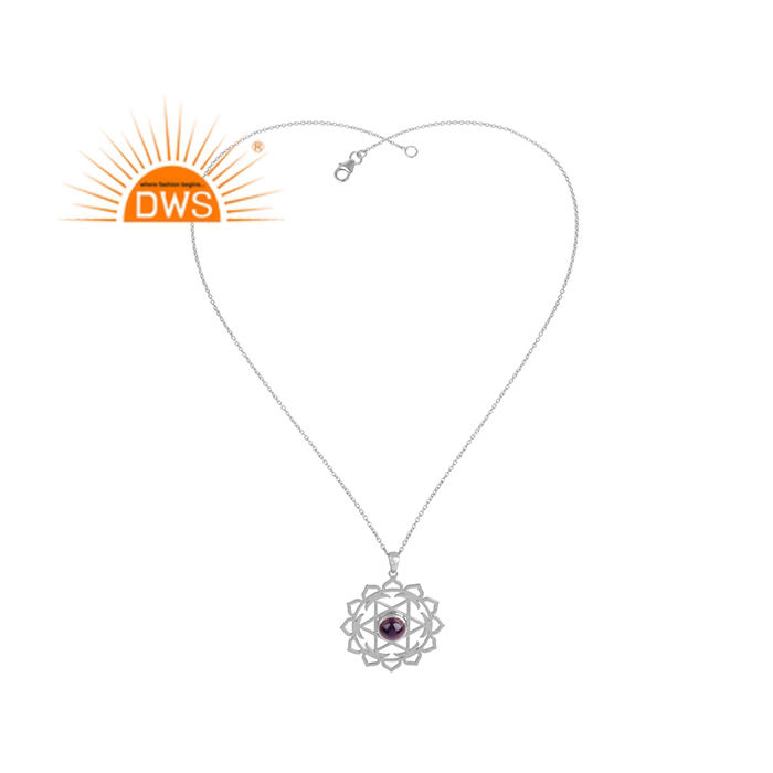 Energy Wheel Design Pendant Necklace Fine Silver Jewelry Manufacturer Natural Amethyst Gemstone Necklace