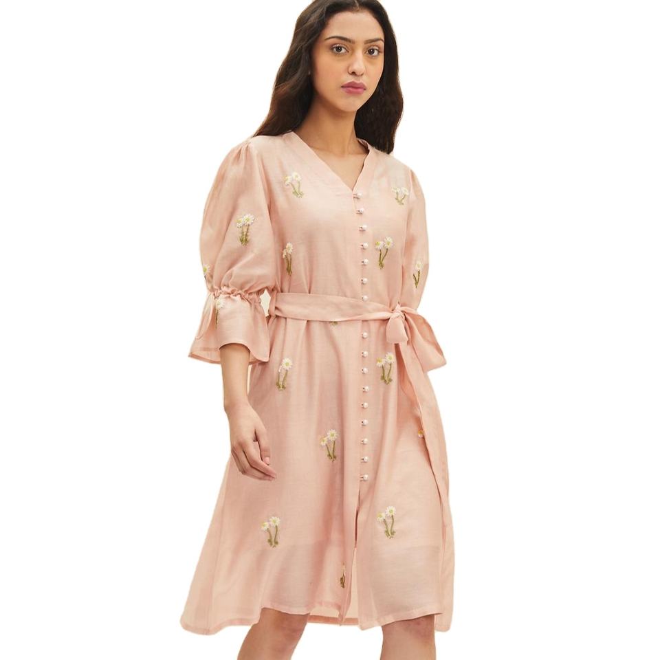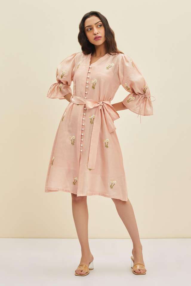 เดรสยาวถึงเข่าพร้อมเข็มขัดสำหรับผู้หญิงสามไตรมาสเสื้อผ้าปาร์ตี้งานหมั้น