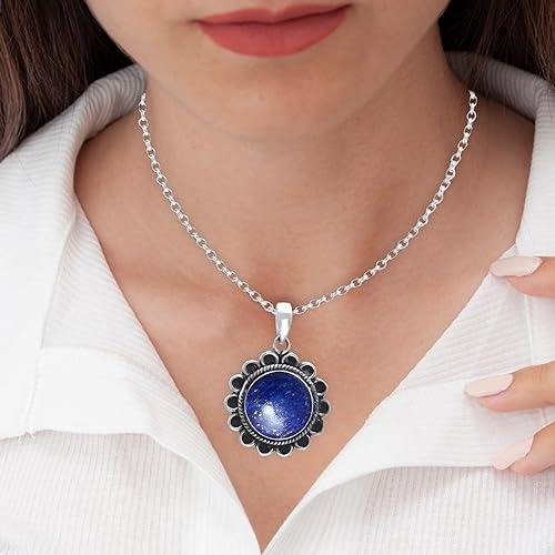 ของขวัญจี้หมั้นสำหรับความรัก Lapis Lazuli จี้พลอย925เงินแท้จี้ Lapis พร้อมเครื่องประดับจี้925แสตมป์