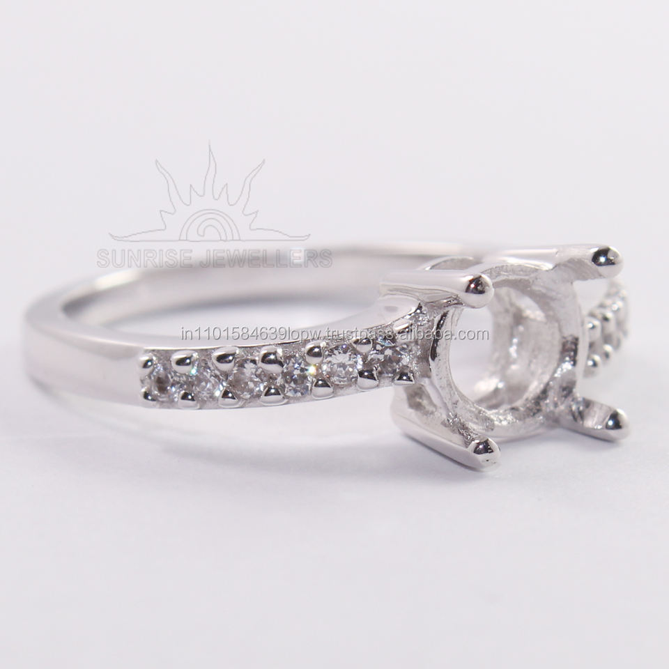 แหวนหมั้นทุกขนาด925เงินสเตอร์ลิง6x8มม. รูปไข่ CZ กึ่งเมานท์งานแต่งงานของขวัญ unisex