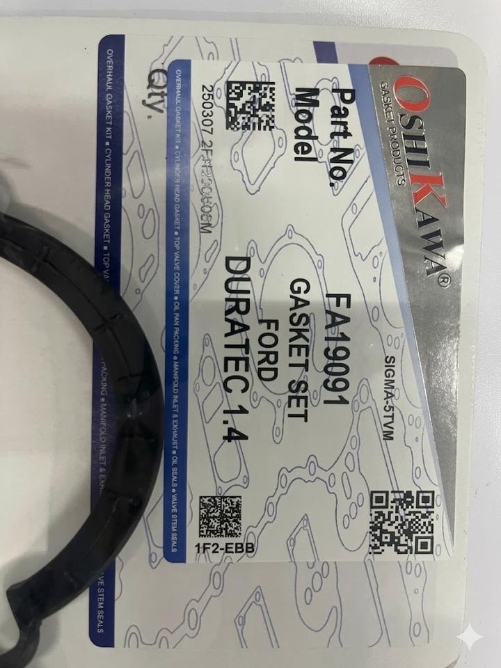 ชุดปะเก็นเครื่องยนต์สำหรับรถยนต์ฟีียสต้า 1.4 ปี 2015-2016 ผลิตโดยโรงงานโอชิคาวะในประเทศไทย น้ำหนัก 2.7 กก.