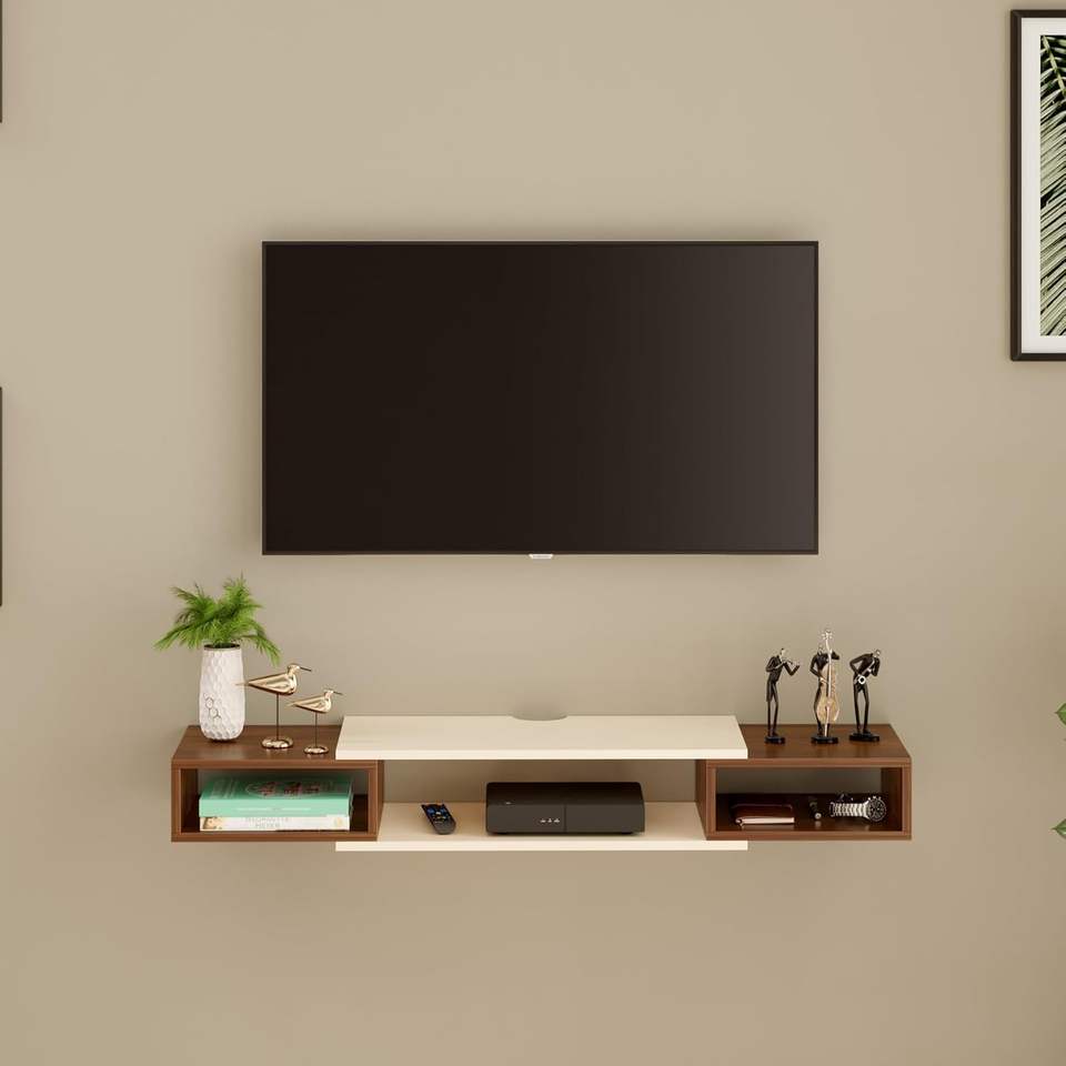 ชุดตู้วางทีวีติดผนังไม้สำหรับงานวิศวกรรม พร้อมชั้นวางกล่องรับสัญญาณ/ตู้ทีวี ชั้นวางหนังสือ และชั้นวางของตกแต่ง