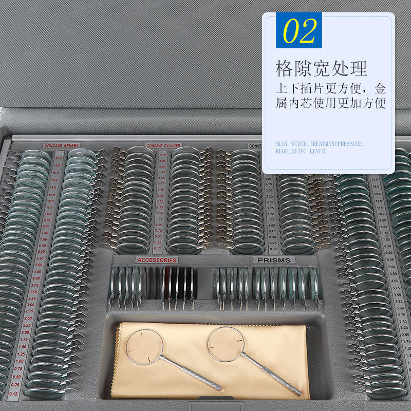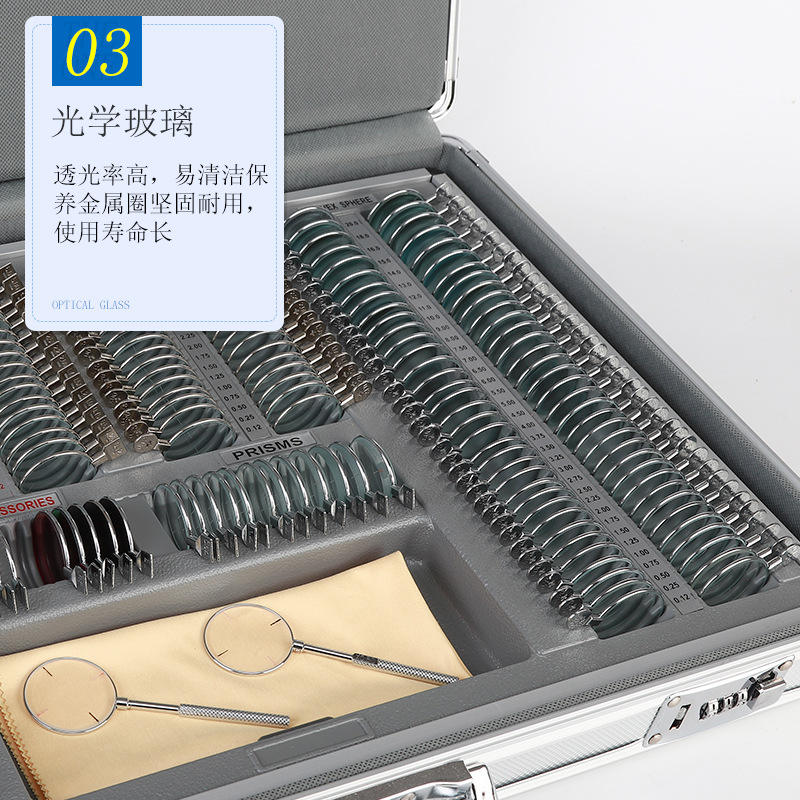 ชุดเลนส์ทดลองโลหะ 232 ชิ้น พร้อมทรงกลมเว้า ทรงกระบอก ปริซึม และอุปกรณ์เสริมสำหรับการตรวจวัดสายตา