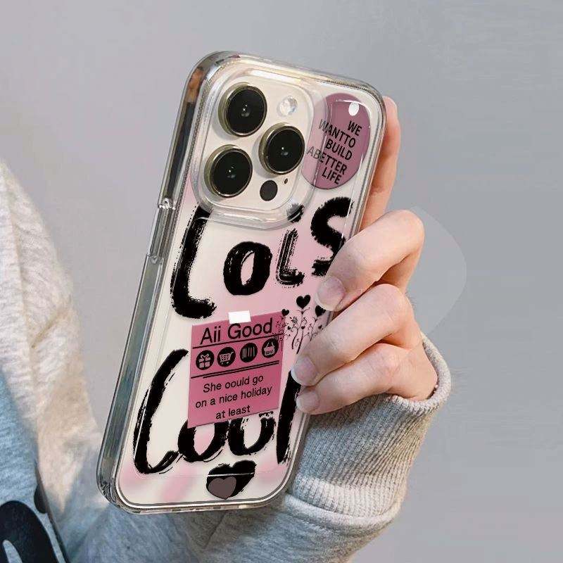 เคสโทรศัพท์ลายกราฟฟิตี้สุดเท่สำหรับ iPhone รุ่น 17 16 15 14 13 12 11 Pro XR XS Max 7 Plus สไตล์สาวหวานสีชมพูน่ารัก