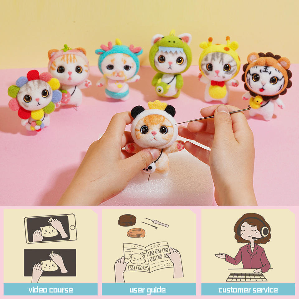 ชุดผ้าสักหลาดขนแกะลายแหย่รูปแมวตาโต3แบบ1ต่อ1คู่มือการสอนวิดีโอ DIY